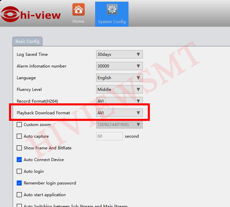 3.ตั้งค่า Playback Download Format เป็น AVI