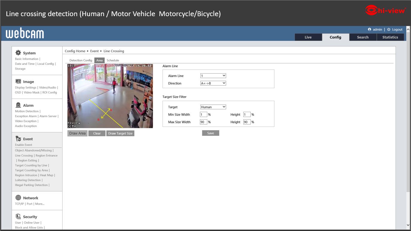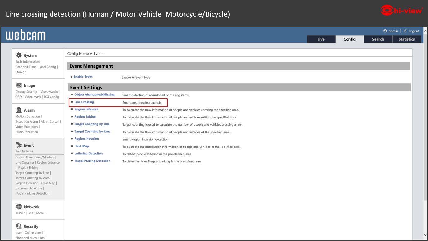 ตั้งค่าหัวข้อ Config > Event > Line Crossing