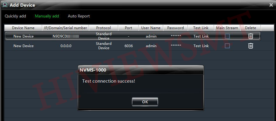 8.ที่หน้าโปรเเกรม NVMS-1000 ทำการ Test Link ใหม่ จะขึ้น Test Connection Success!
