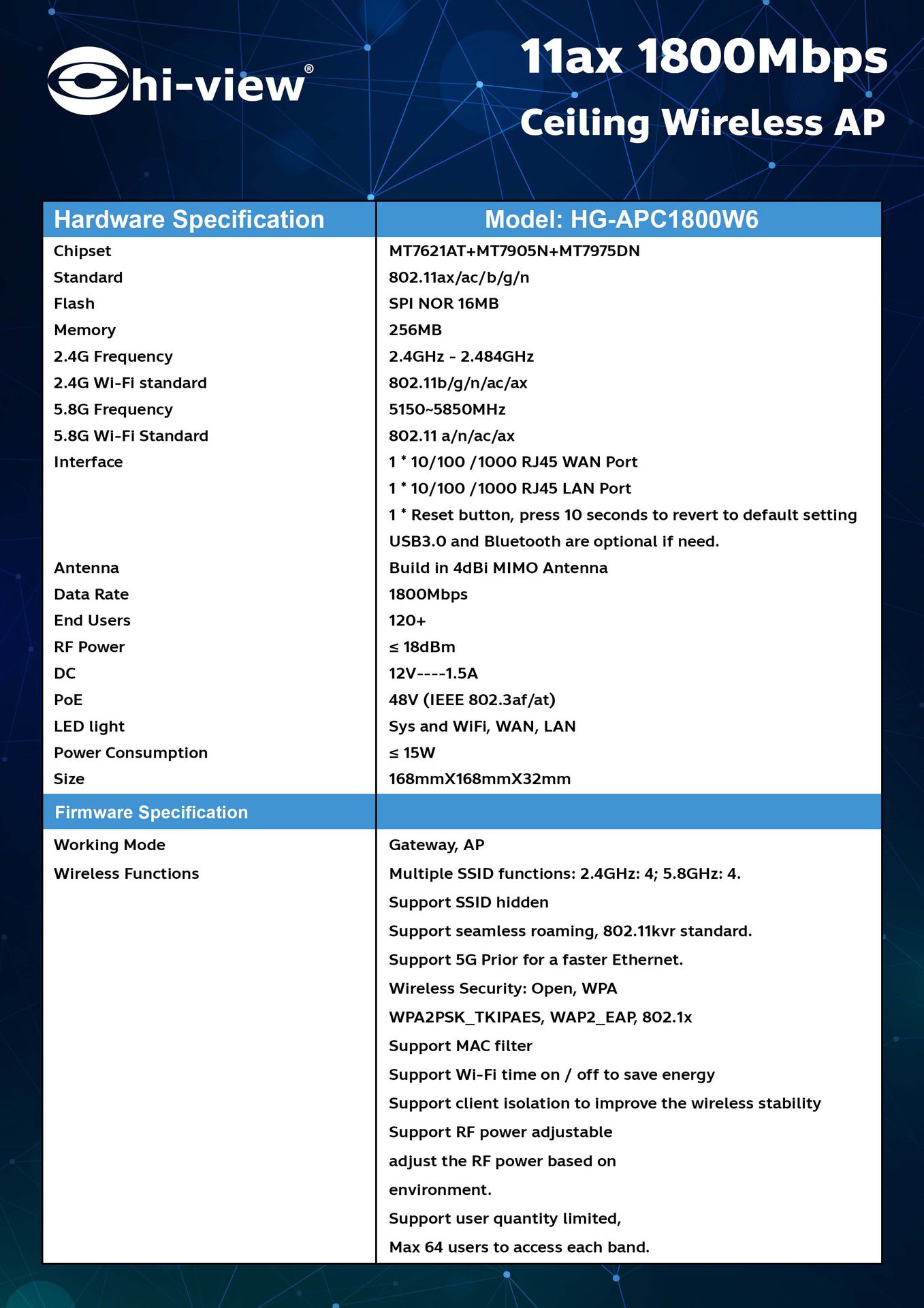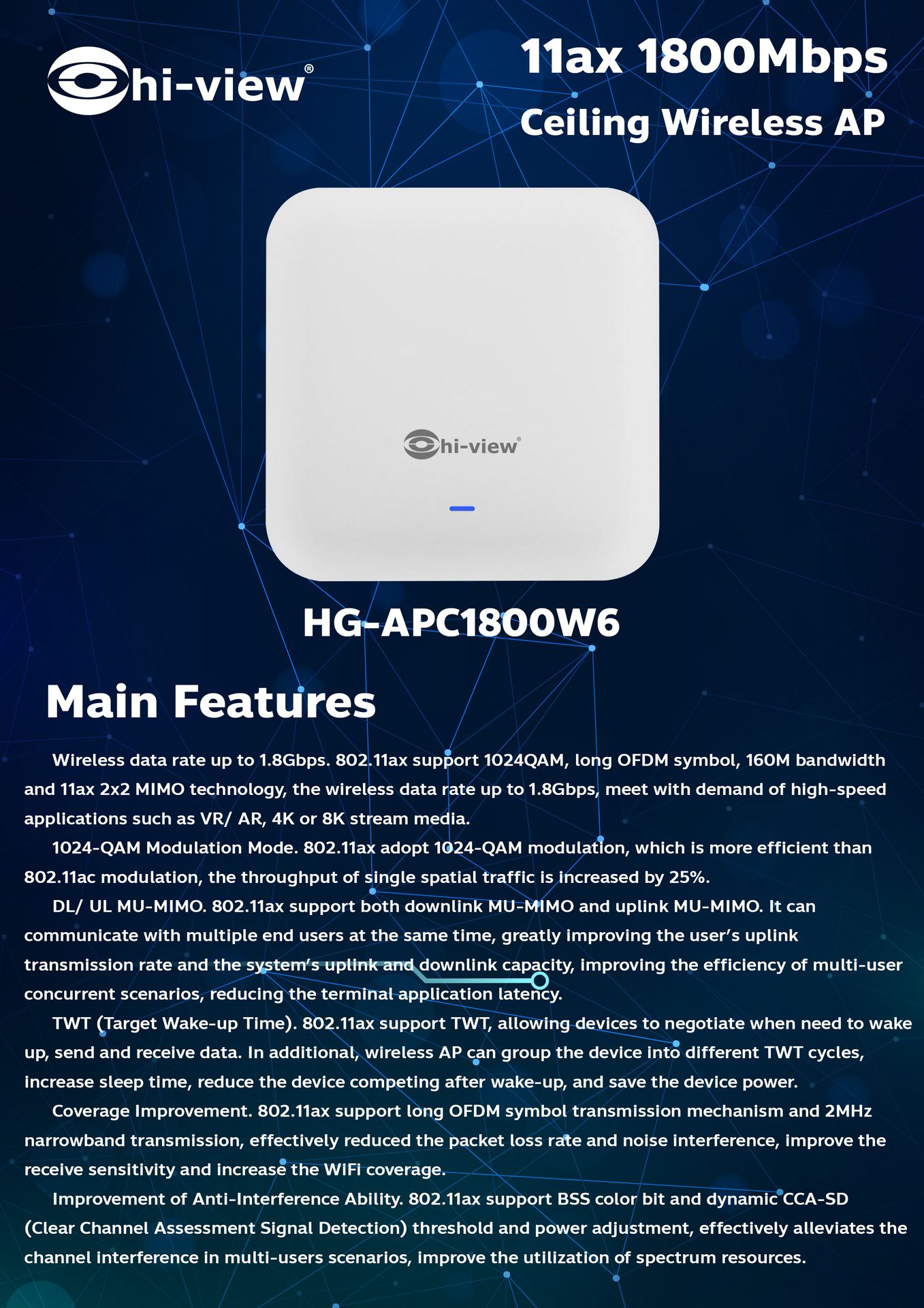 คือ อุปกรณ์กระจายสัญญาณ Wi-Fi 6 แบบ มาตรฐาน 11AX รองรับเทคโนโลยี Wi-Fi 6, MI-MIMO, Wave2.0, OFDMA และ Seamless roaming สามารถปล่อยไวไฟคลื่นความถี่ 2.4GHz และ 5.8GHz เชื่อมต่อได้ไวและแรงกว่า รองรับอุปกรณ์ได้มากขึ้น สามารถส่ง ข้อมูลพร้อมกันไปยังอุปกรณ์หลายๆ ตัวพร้อมกัน ลดคลื่นช่องสัญญาณไวไฟชนกัน