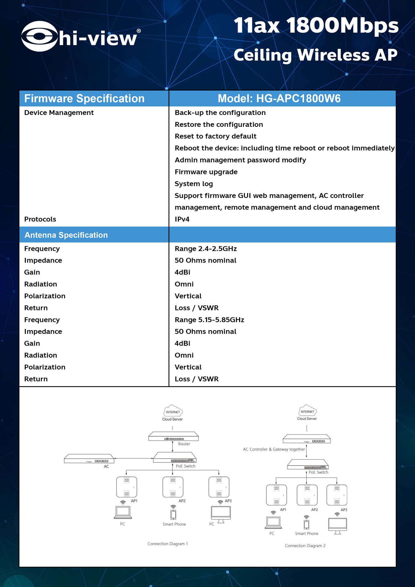 สามารถติดตั้งบนเพดานหรือกำแพง สามารถเชื่อมต่อเครือข่ายหรืออินเตอร์เน็ตได้ใช้ไฟเลี้ยงแบบ PoE หรือ Adapter ก็ได้