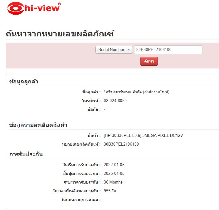 3.นำ Serial Number ของสินค้าไฮวิว มากรอกเเล้วกดค้นหา