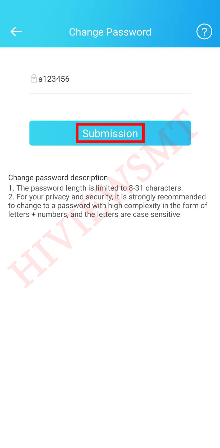 14.Change Password > สร้างรหัสผ่าน * ตัวอย่าง a123456 > Submission