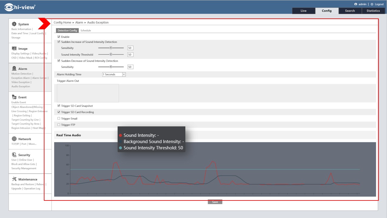 ตั้งค่าฟังก์ชั่นได้ที่หัวข้อ Config Home > Alarm > Audio Exception