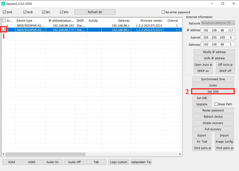1.เปิดใช้งานโปรเเกรม EasyTool > ติ๊ก > Set OSD