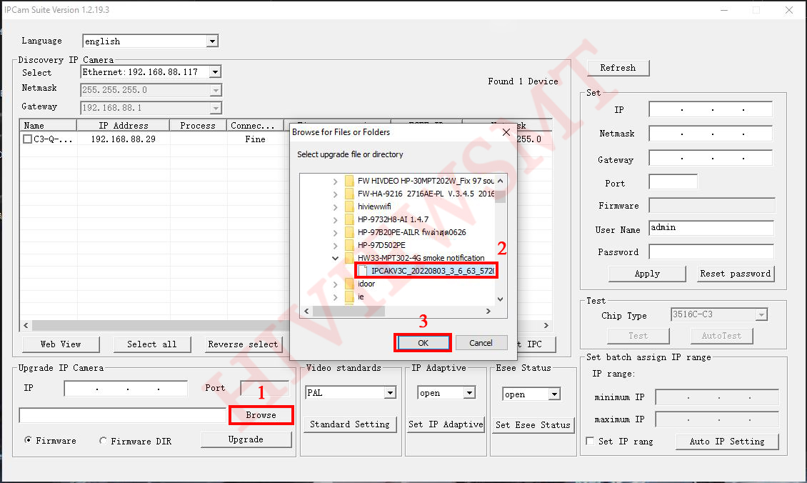 4. โปรเเกรม IPCamSuite Browse ที่อยู่ไฟล์ FW > OK