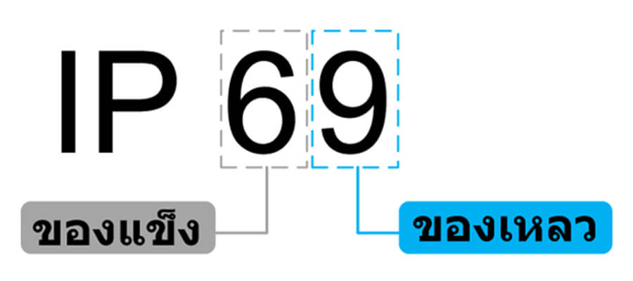 • IP65 หมายถึง สามารถป้องกันฝุ่นได้ และการป้องกันจากการฉีดน้ำ ที่ตัวอุปกรณ์ได้จากทุกทิศทาง