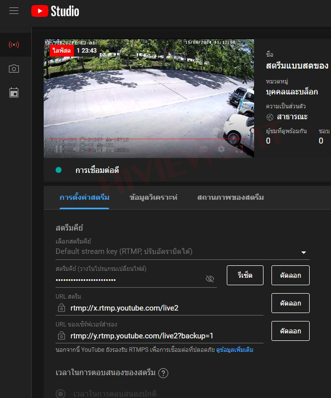 2.เข้า www.youtube.com > ไลฟ์สด > Server Address กรอกที่ข้อ 3.