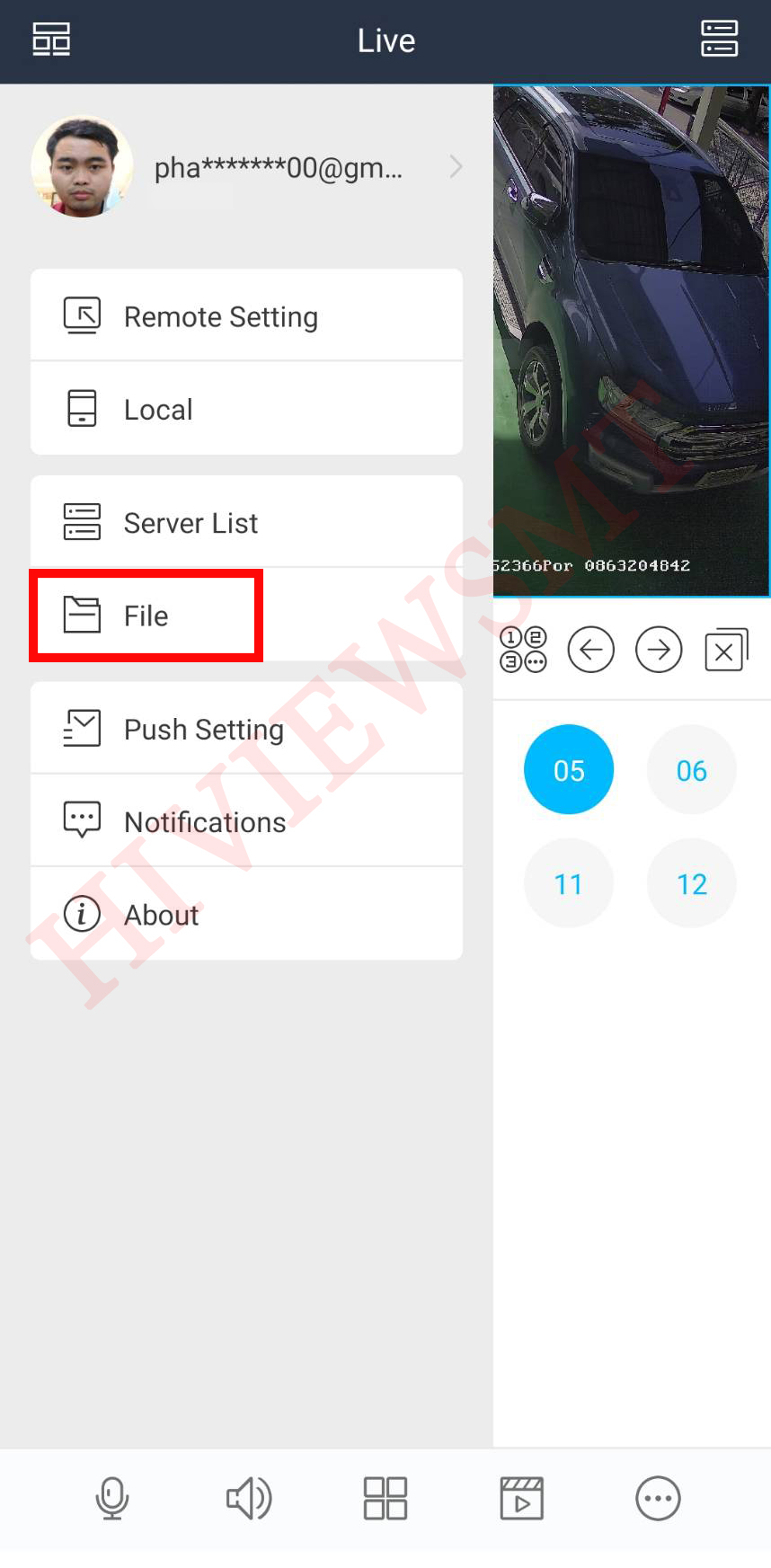 7.File แสดงไฟล์วีดีโอ ที่สำรองข้อมูลทั้งหมด สามารถเปิดดูภาพ หรือ แชร์ไปยัง Line,Mail ฯลฯ