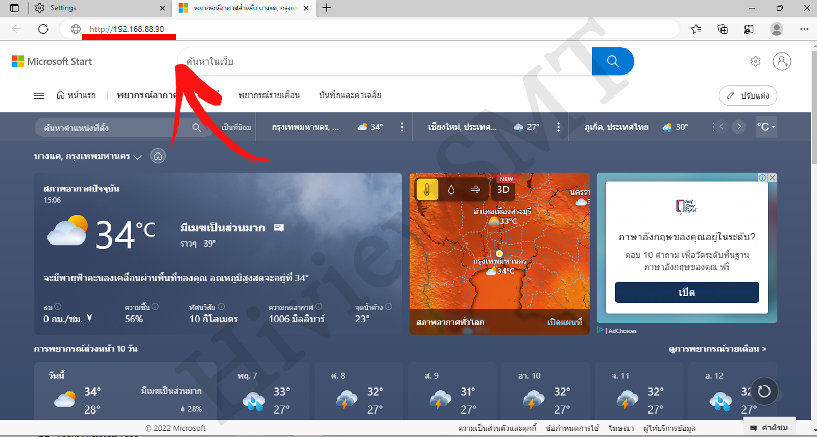 6.ช่องค้นหาของ Microsoft Edge > พิมพ์เลขไอพี หรือ ชื่อเว็บไซต์ ที่เเอดเข้า Internet Explorer mode pages > Enter