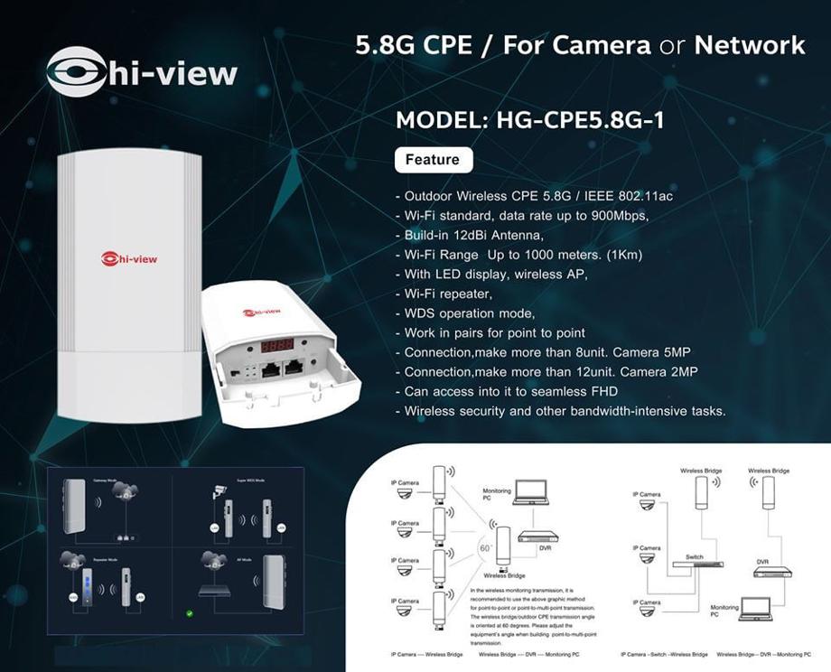 กรณีหน้างานที่เดินสายไม่ได้จริง เดินสายข้ามตึกมันยากหรือใช้งบประมาณที่มากเกินไป อุปกรณ์ CPE5.8G สามารถรบส่งข้อมูลได้มากพอสำหรับกล้องวงจรปิดไม่ต่ำกว่า10ตัว