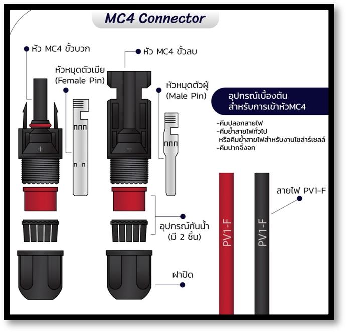 ก่อนที่จะพูดถึงการต่อสาย เราต้องทราบกันก่อนว่า การเชื่อมต่อแผงโซลาร์เซลล์นั้น จะนิยมเชื่อมต่อกัน 2 รูปแบบ คือแบบ อนุกรม (Series) และแบบ ขนาน (Parallel) หากต่อแบบขนาน จะต้องใช้หัวประเภท Y-branch หรือ T-type เพิ่มเข้ามา เพื่อรวมขั้วไฟ ก่อนนำไปต่อเข้ากับอุปกรณ์นั่นเอง ส่วนการต่ออนุกรมจะใช้หัว MC4 ที่เป็นลักษณะการนำหัวไปเข้ากับสายได้เลยตรงๆ