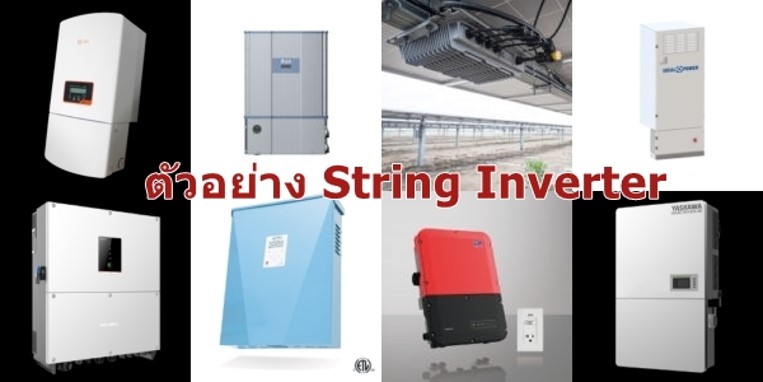 2. String Solar Inverter เป็นอินเวอร์เตอร์ขนาดเล็กที่ใช้สำหรับโซล่าเซลล์ระบบออนกริด โดยมีขนาดให้เลือกใช้ตั้งแต่ 2 - 60 กิโลวัตต์ เป็นอินเวอร์เตอร์ชนิดนี้นิยมนำมาใช้กันภายในบ้าน สำนักงาน โรงงาน และอาคารอื่นๆ โดยทั่วไป